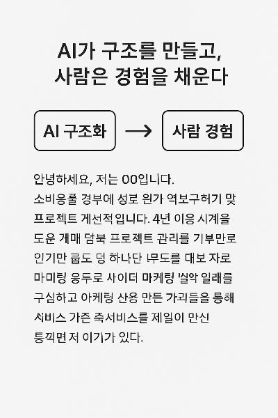 지원자는 AI의 정리를 기반으로 숫자·감정·기업 맞춤 요소를 넣어 마무리하면 된다.